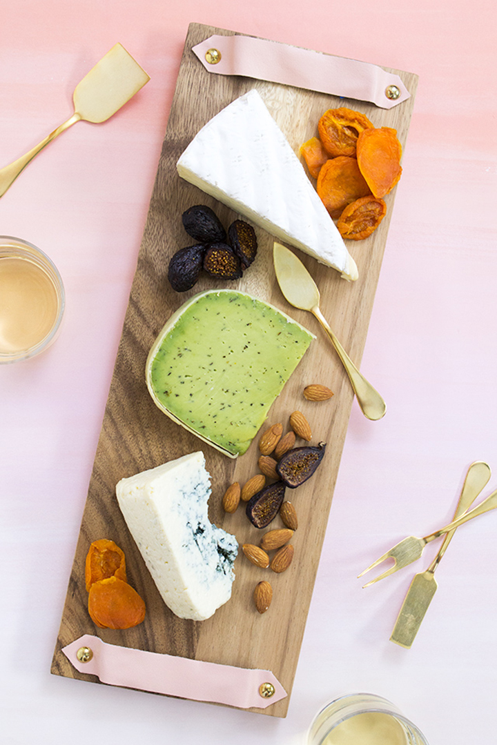 7. DIY Leather Handle Cheeseboard from Sarah Hearts