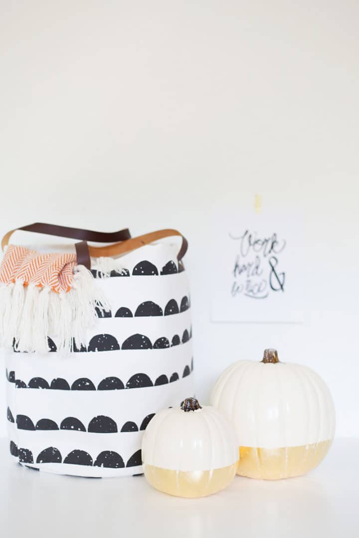 18. DIY Gold Leaf Dipped Pumpkins from Lovely Indeed