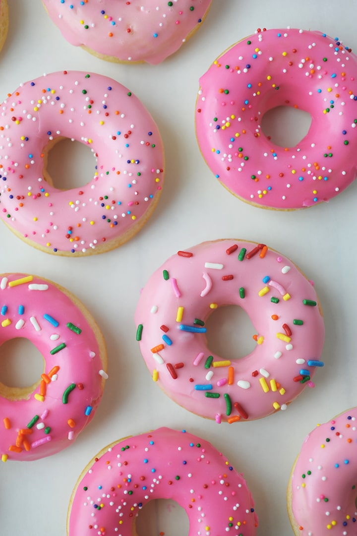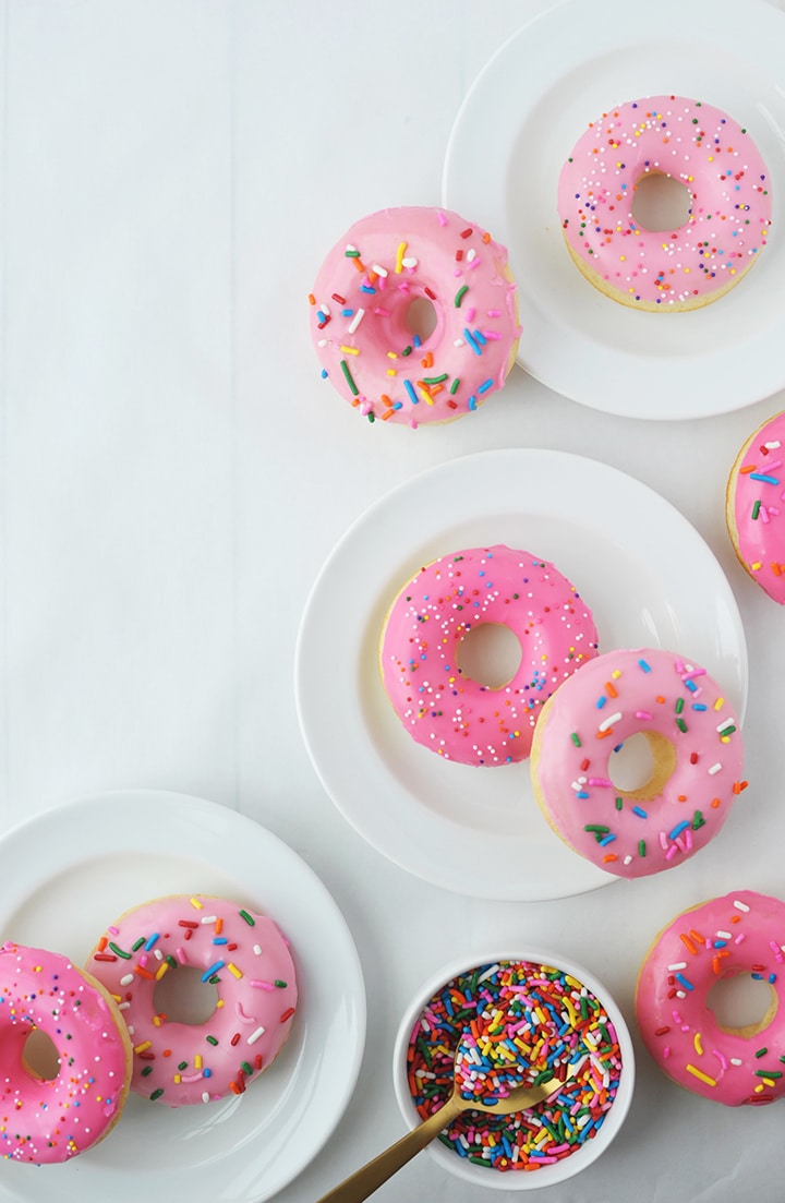 These baked donuts are on the light and airy side of the donut family. They’re really a cross between a muffin and a cupcake if you ask me. But there’s something so fun about homemade donuts, especially when they are pink.