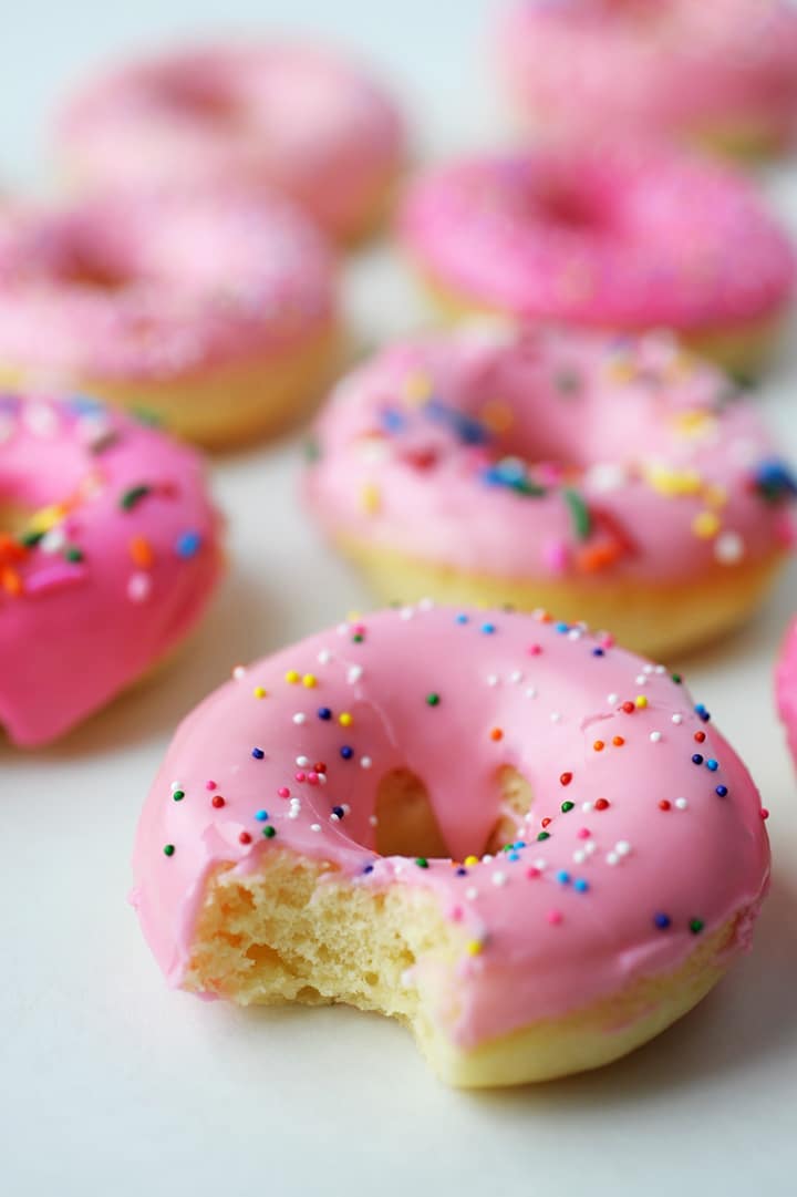 These look sooooo pretty! And my favorite types of donuts – iced with sprinkles!