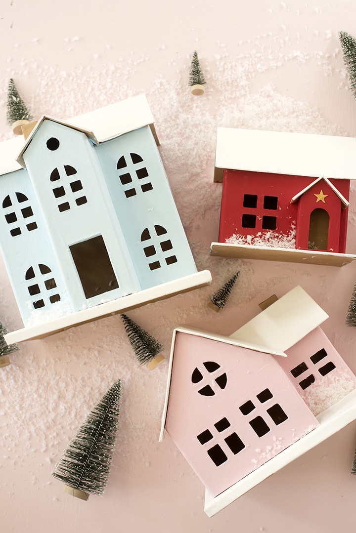 How cute would this be to make as a gift for grandparents? Sending a little DIY Christmas Village would be the sweetest thing!