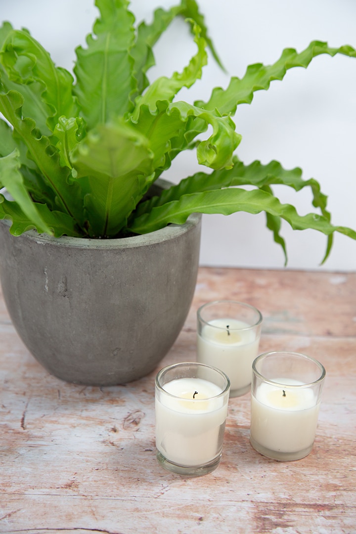 These candles have become my go-to hostess gift this summer as well. I wrapped some decorative ribbon or paper around the votives. My next candle making project will be making a larger size citronella candle for the lake house! Hope you will enjoy candle making as much as I have been.