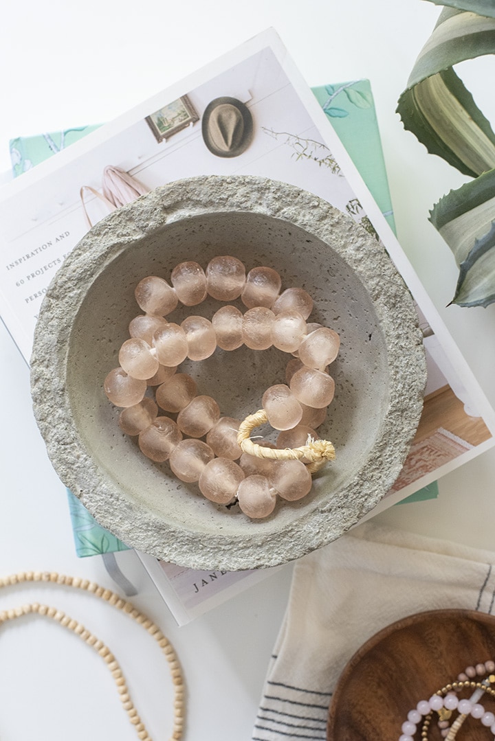 We’ve got a thing for little bowls – especially these air dry clay ones we hand painted. But making something larger has always been on our list. We were surprised by how easy it was to make these concrete bowls. We even made some round and square planters too. It was just the time we had to wait to let the concrete cure, or dry, that was the toughest part 🙂
