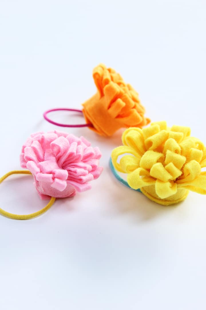 Watch our video for the DIY Felt Flower Hair Ties on Darby.