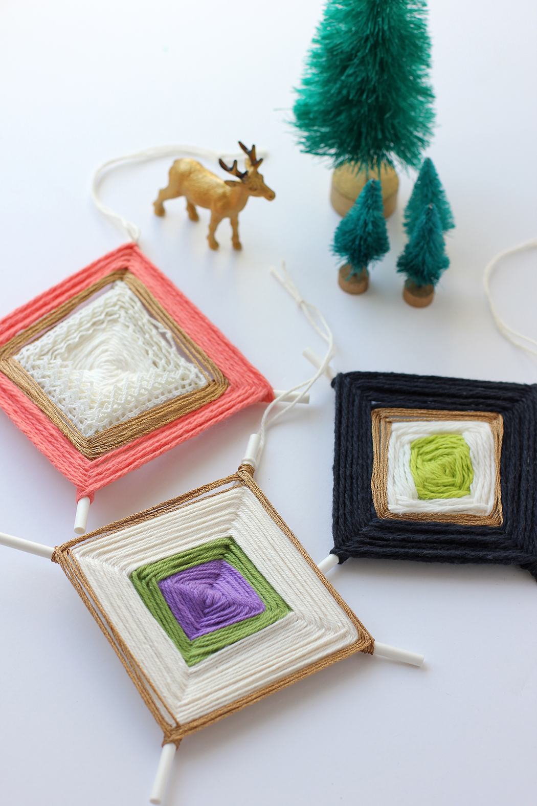 We have another DIY ornament for you this holiday. Ready to get your inner-child summer camp on? Remember making God’s eye string art at camp…. well, these make amazing ornaments. Gather some embroidery thread, yarn, lace, fabric and a few sticks and you are ready to go.