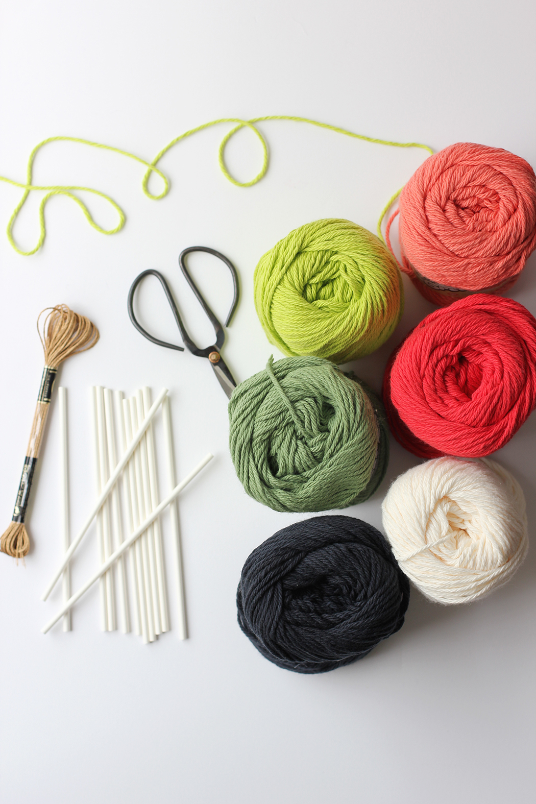 Supplies: cake pop sticks // yarn // embroidery thread // lace ribbon // glue gun // scissors