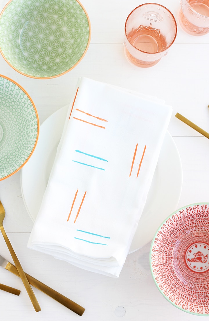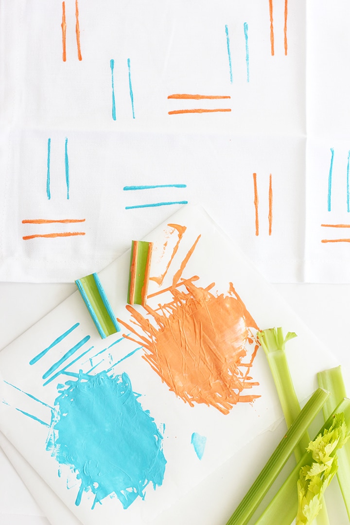 We are always love trying a new technique or method to our craft projects. The other day, I played around with different stamping methods on some cloth napkins for my latest DIY post for minted. I thought I would go with creating a pattern using fabric paint and potatoes as stamps. But I found a new favorite natural stamp… celery! I also loved how the pretty spring colors turned out. Check out the full tutorial for the DIY hand-stamped cloth napkins over on minted’s blog, Julep!