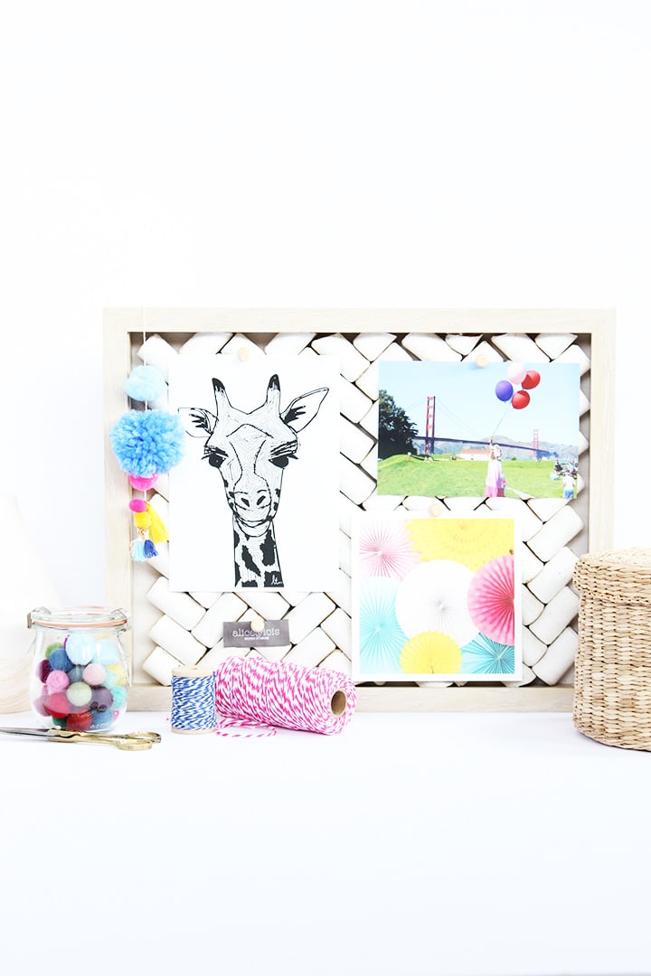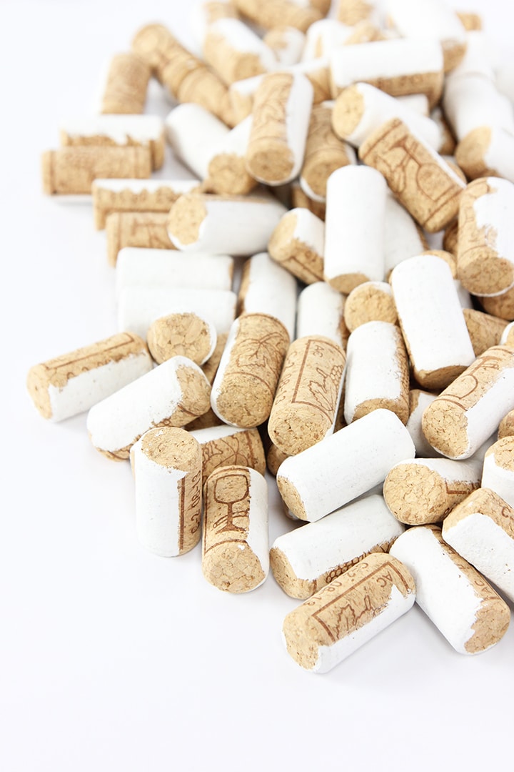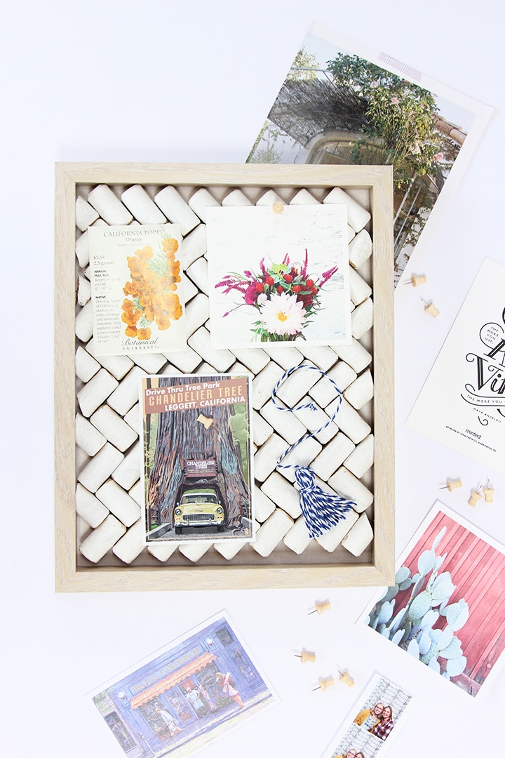 I used a shadowbox frame, corks, white paint and my handy hot glue gun for this project. Head over to Fun365 for the full tutorial on how we made this DIY Herringbone Corkboard.