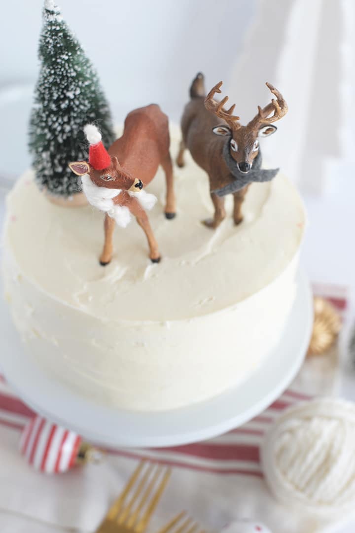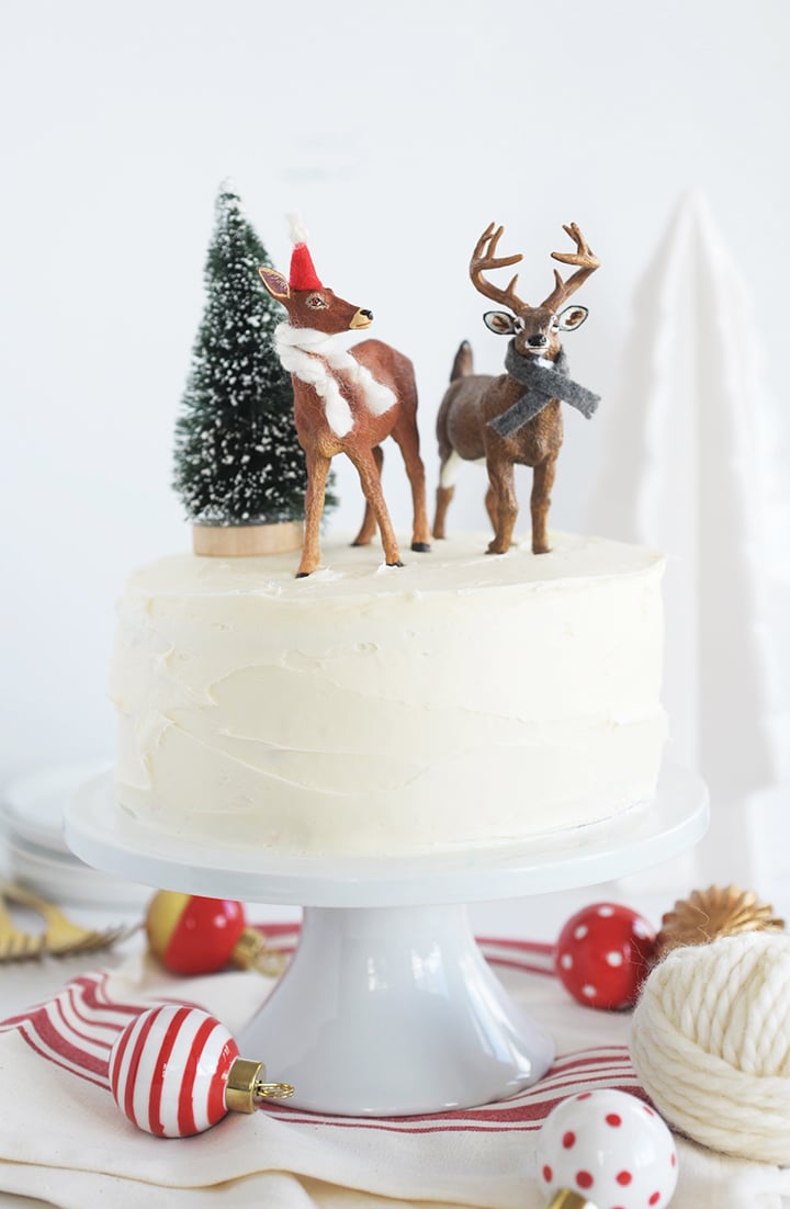 This holiday, add some fun and festive cake toppers to your Christmas dessert. Why not bake a cake this Christmas? We found these sweet reindeer animal figurines and dressed them up for the holidays. All you need is some felt and yarn to create these cute little scarves and hats.