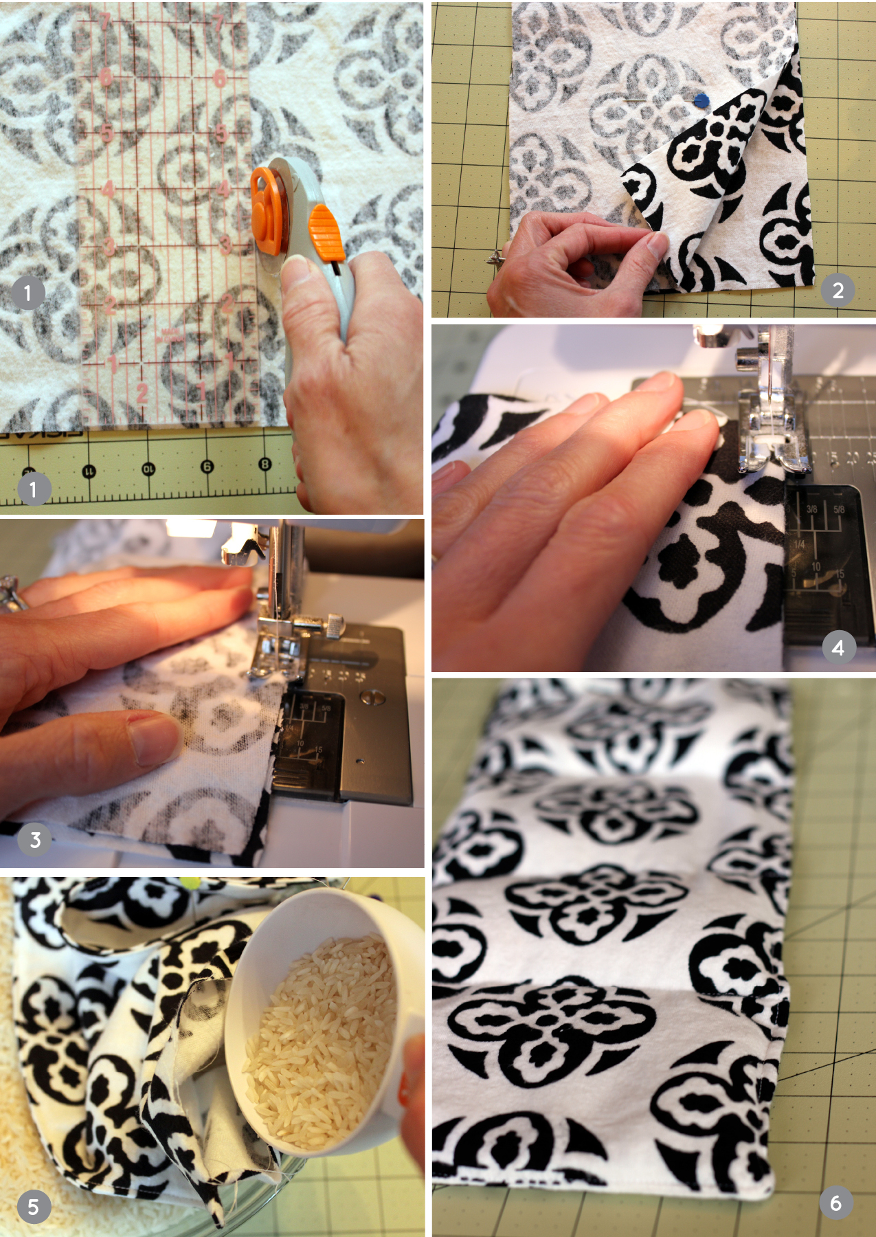 1. Measure and cut two 28 x 8 rectangles out of flannel fabric.