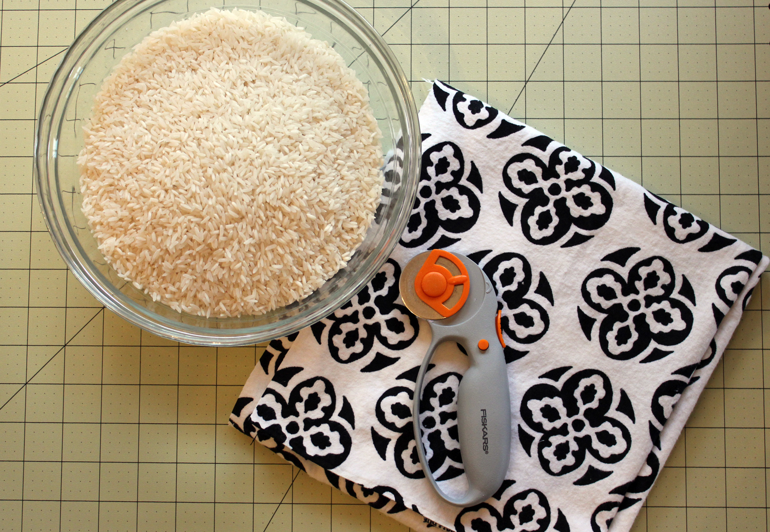 I have used a tube sock before in an emergency when I could not find my rice bag. And used Jasmin rice. It has a wonderful smell that lasts because it is grown into the rice. In the emergency I just tied a knot in the top of the sock.