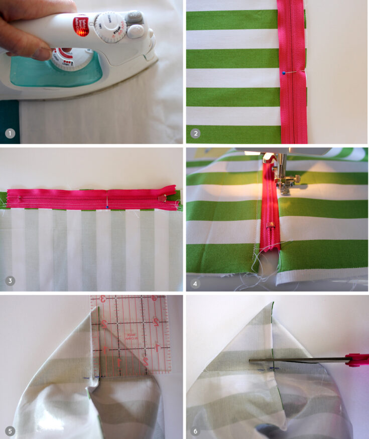 3. Inside out the “tube” of fabric. Cut off corners. Sew an 1/8 inseam around the 3 sides, leaving the top open again.