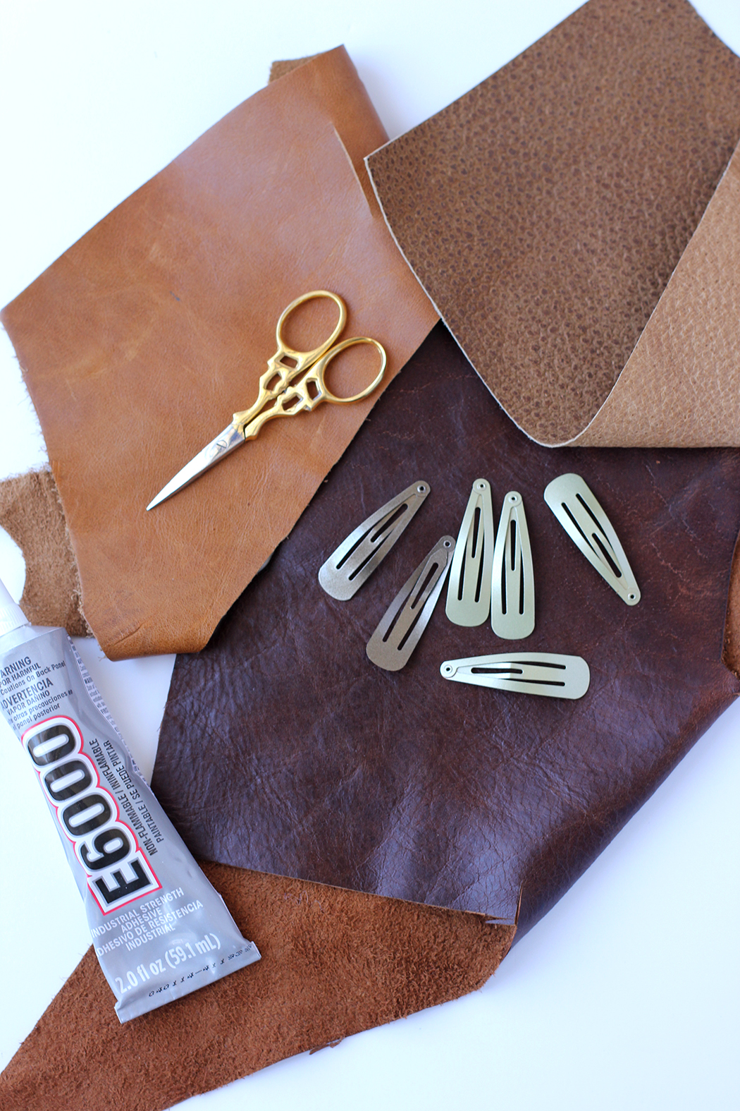 Supplies: leather scraps // glue (I used E6000) // hair clips (I used Goody brand) // scissors