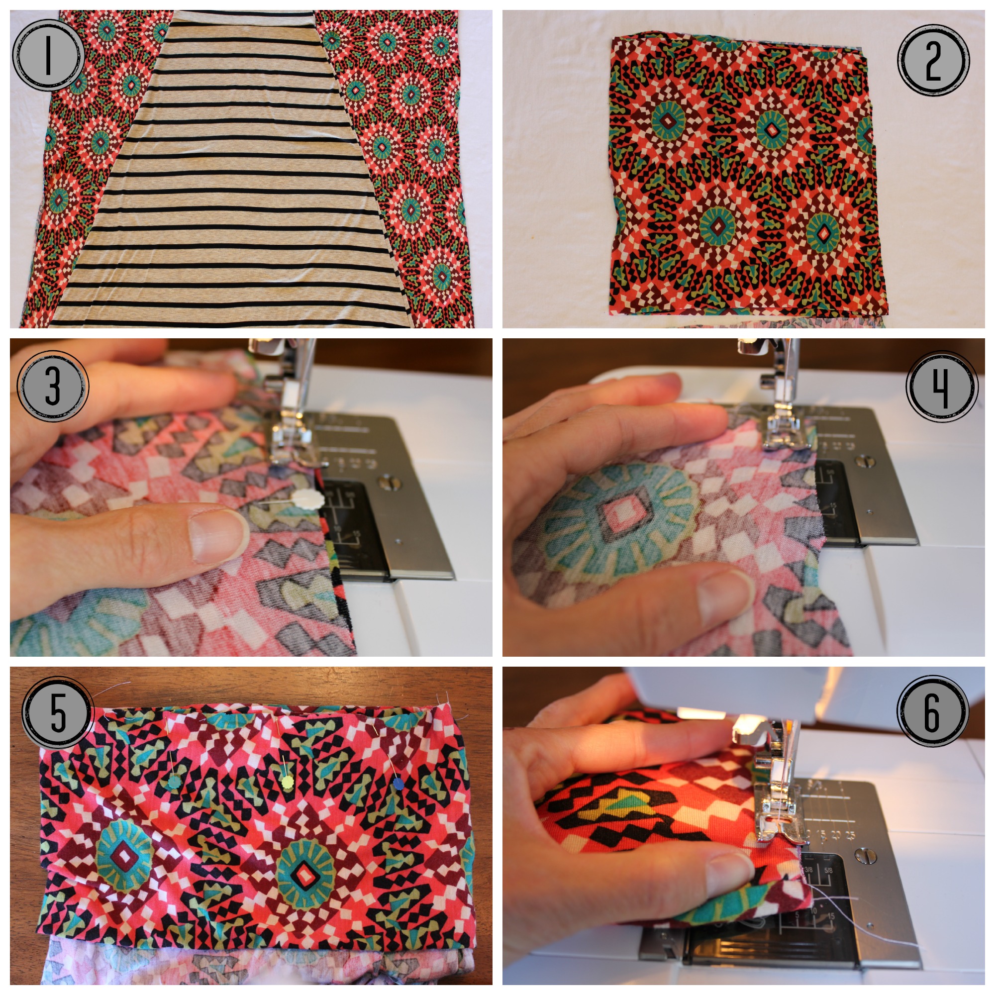 Supplies needed: maxi skirt from closet, sewing machine, ball point needle for machine, thread and 2 yards of stretch jersey fabric