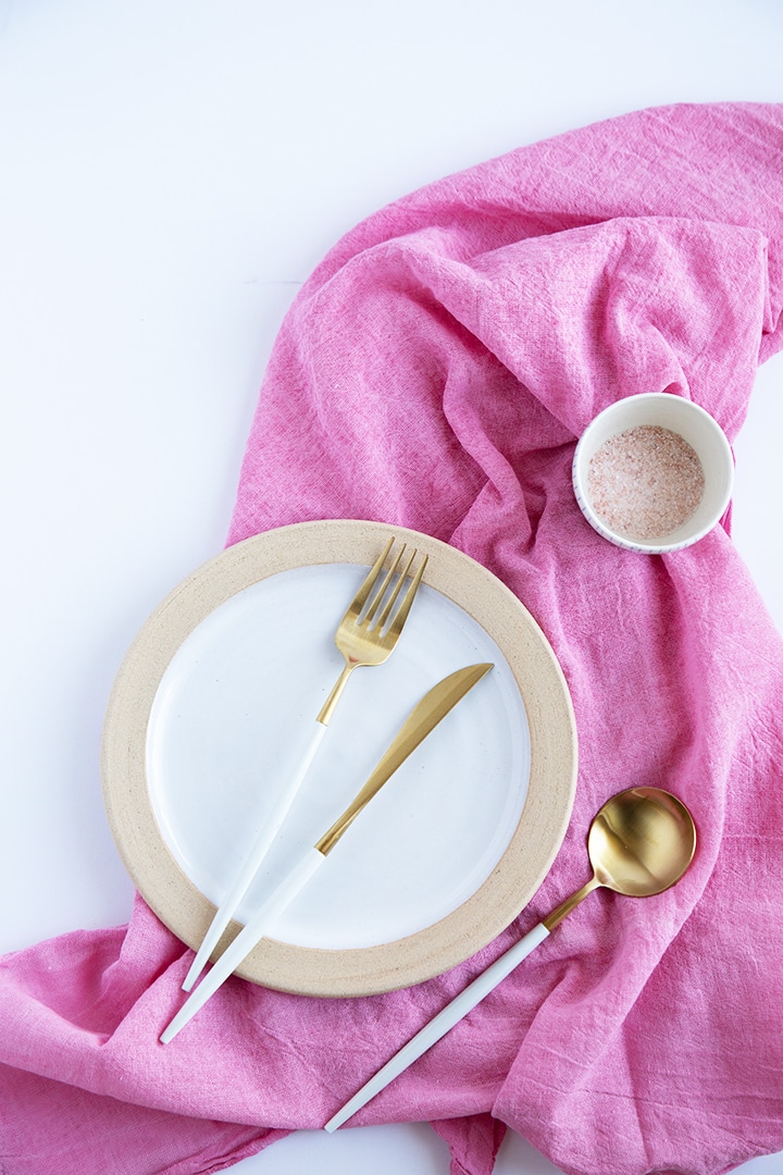 Ok, are you ready for the DIY Natural Dye Dish Towel tutorial?! You too will become slightly obsessed with dyeing any cotton or linen fabric that you might have lying around! Dyeing fabric can get a bit messy, so having the Lysol Daily Cleansing Spray & Wipes on hand was perfect! Quick and easy clean up for a messy project is key.