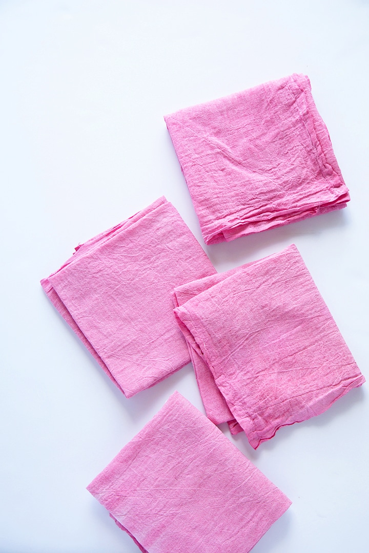 1. The pink stays on the fabric because you should prep your fabric with a fixative – I used vinegar. This allows the fabric to keep and absorb hte natural dye. I would recommend washing and drying alone a few times. The color has faded a little bit over time.