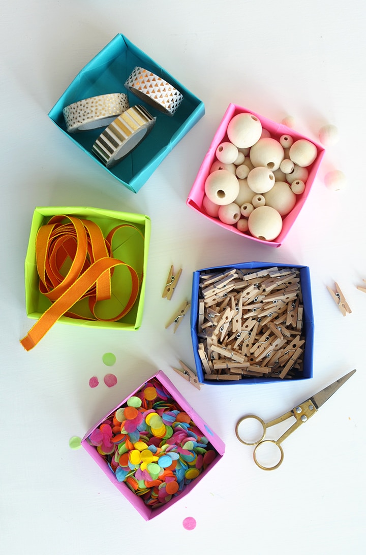 We love DIY projects that are versatile in every sense of the word. Versatile projects that can be as much fun for the kids as it can be for adults, and versatile in how the finished project can be used. These DIY paper boxes can be gift boxes, trinket boxes to hold kid’s treasures, little storage boxes for your office supplies or hold all your precious small craft supplies.