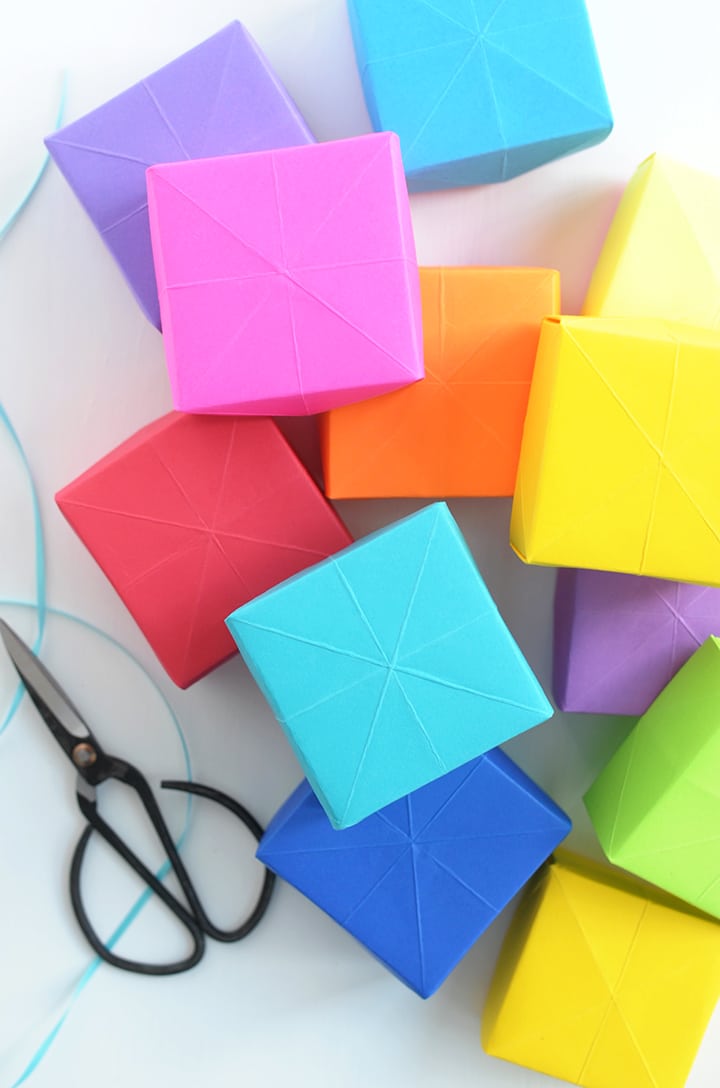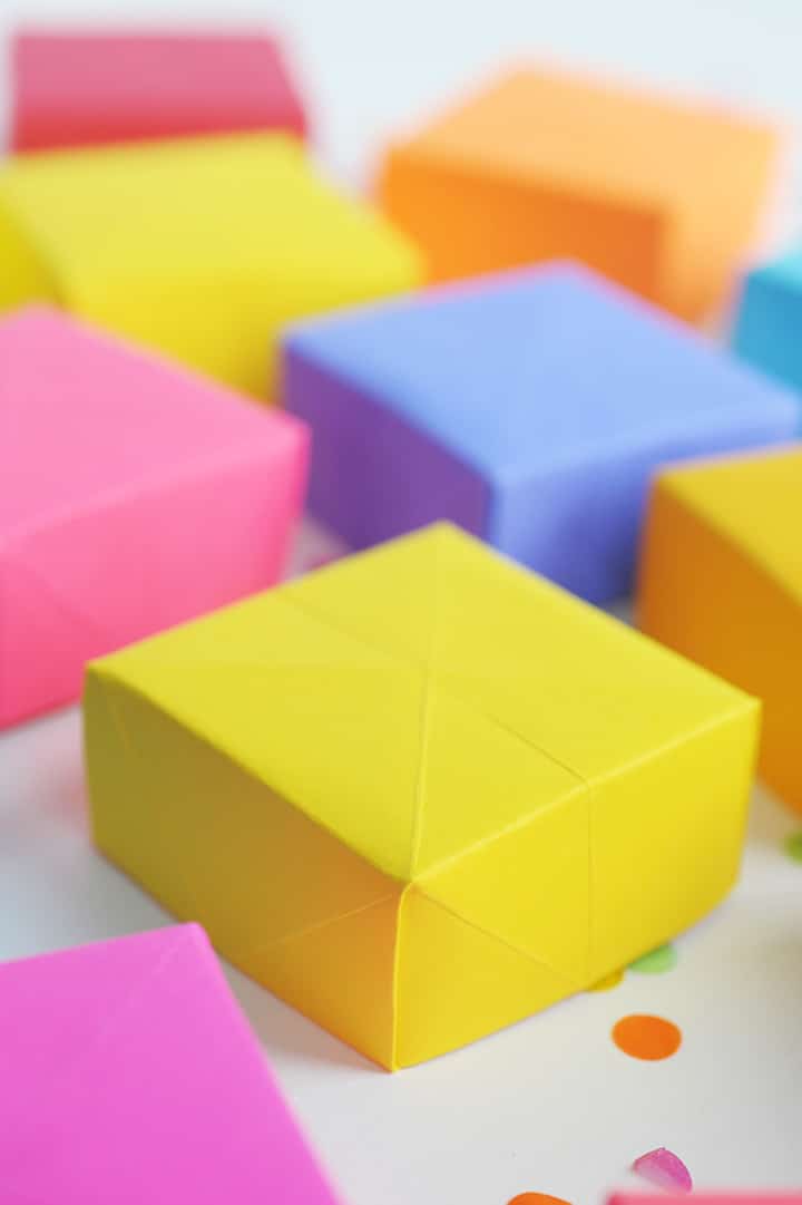 Our favorite way to use these boxes? As gift boxes! Once you get the hang of the folds, you can put on the latest episode of Game of Thrones and crank out a dozen of these paper boxes.