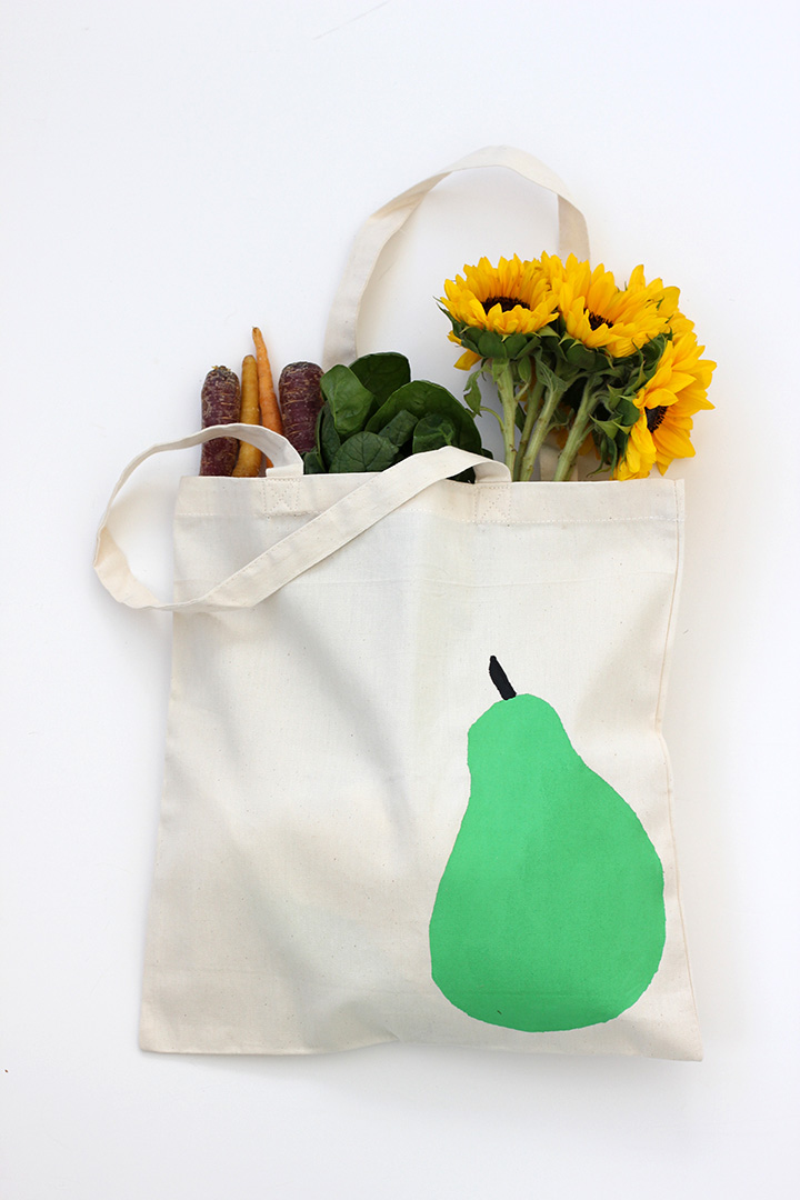 Make this DIY pear tote bag using freezer paper for the stencil!