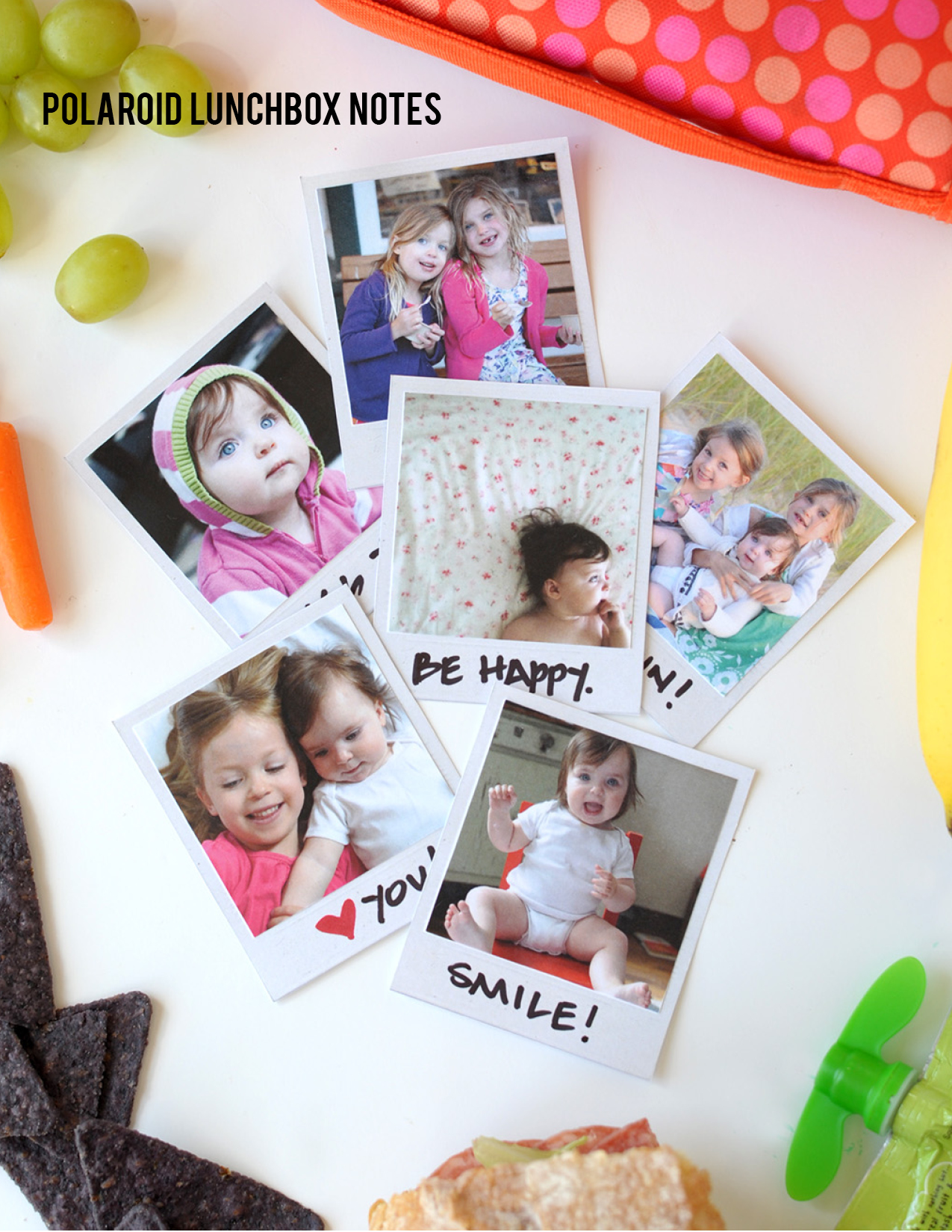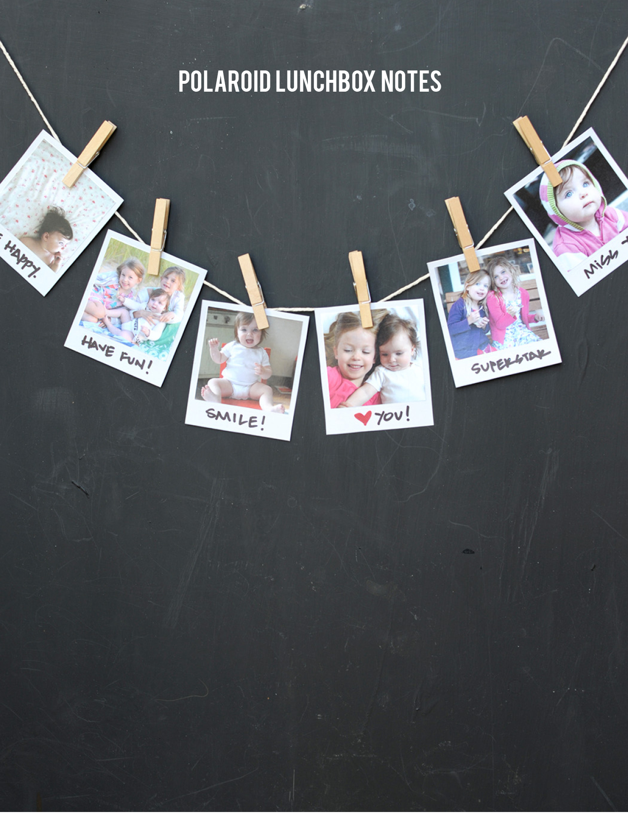 Supplies: polaroid lunchbox notes printable // 2.5 x 2.5 inch pictures // scissors // glue // markers or pen