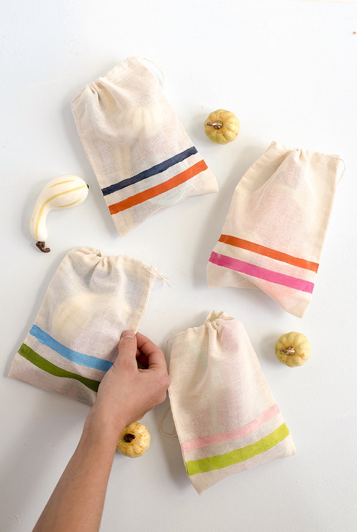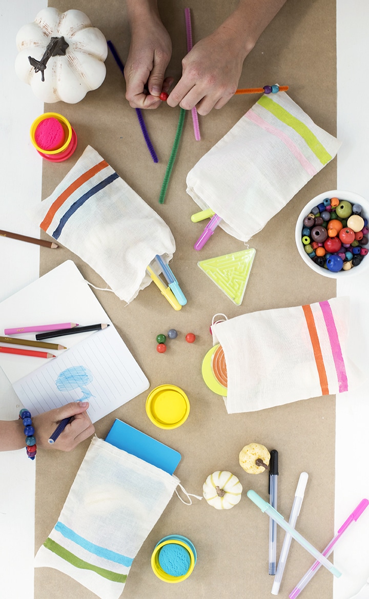 We love to create a special spot for the kids on turkey day to create and play. This year, we made some DIY Thanksgiving Busy Bags for our friends at Better Homes & Gardens. Fill some hand-painted simple canvas drawstring bags with craft supplies, little games and stickers. We love to line our Thanksgiving kids table with butcher paper that can be drawn on! Set out bowls of beads, pipe cleaners, markers and more to invite some creative play for the little ones. Head over to BHG.com for the full tutorial!