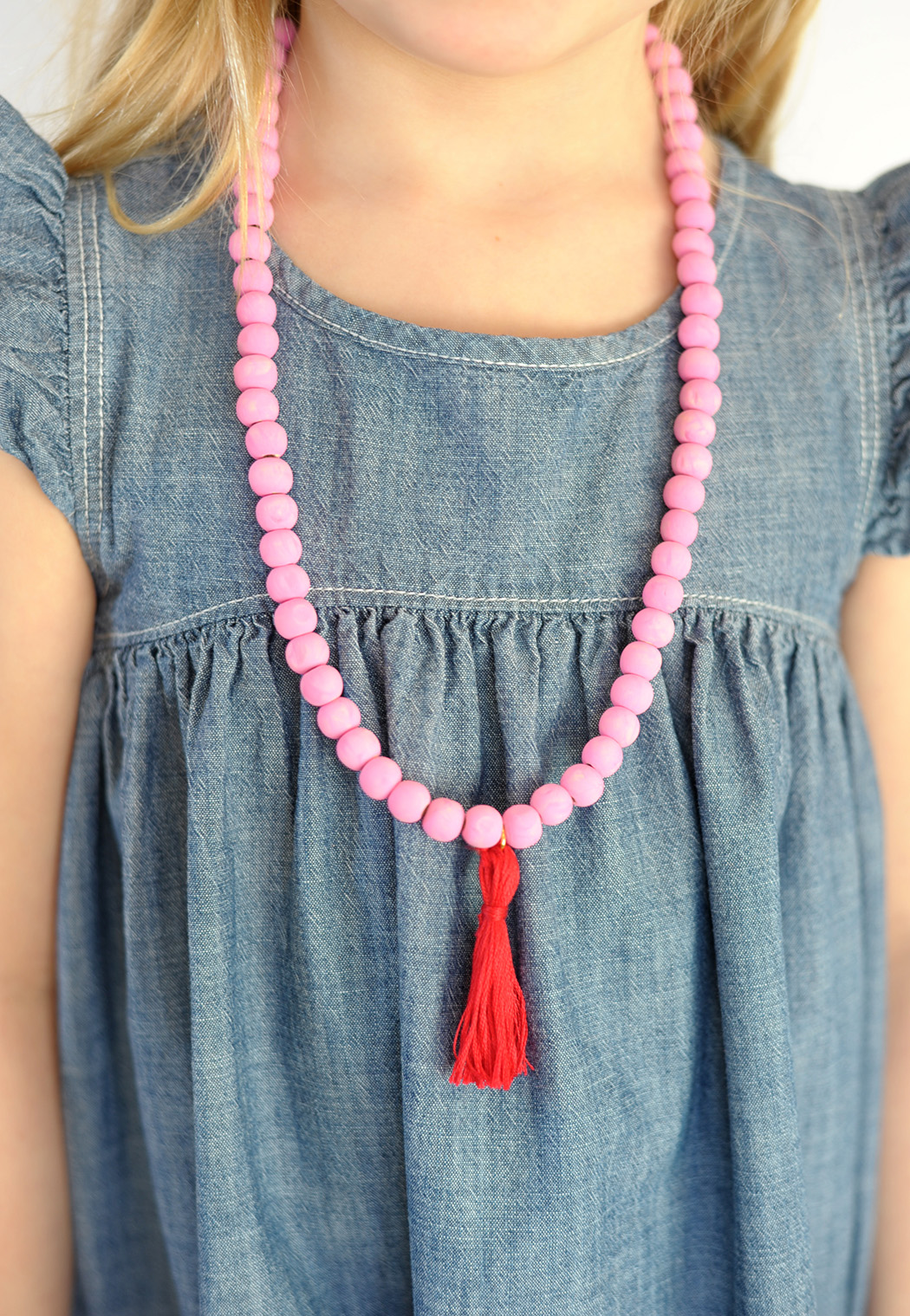 DIY Valentine Wooden Bead Tassel Necklace
