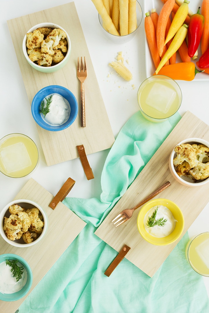 Read more for the DIY Wood Serving Trays and Spicy Cauliflower Appetizer recipe…