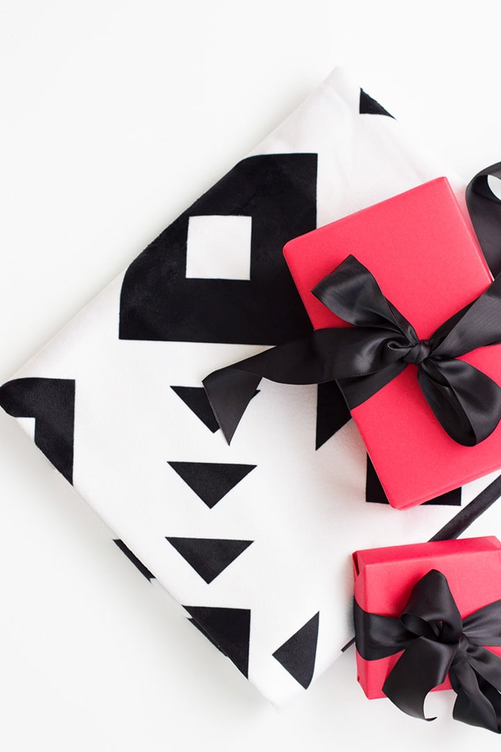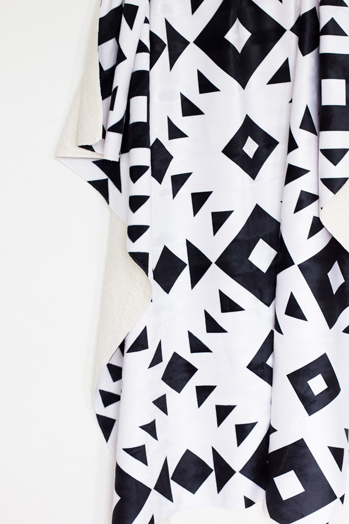 We are back today sharing another way to create a thoughtful and personalized gift for a friend this holiday season. We wanted to create a one-of-a-kind design project for our dear friend. We adore her and her sense of design. So, Melissa created a modern black and white design for us to make a unique gift. When we saw the fleece sherpa blanket on CVS Photo we knew that was the perfect thing! We are delighted to be partnering with CVS Photo today to show you how you can make a personal gift for someone. This blanket is truly unique, soft and warm with a modern black and white print. And guess what? You can download the design right here to make your very own blanket! Nothing ordinary about this gift. And the blankets are 40% off right now (through 12/17)!