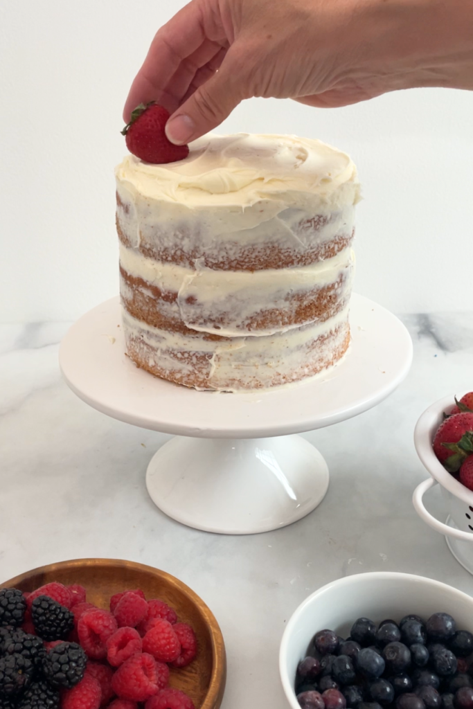 - Frosting cakes. We love the look of the naked cake – just icing a thin layer of icing on the sides of cake.