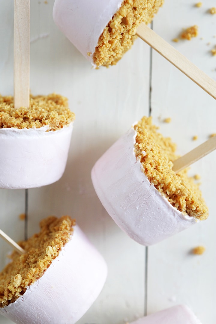 Easy Yogurt Cheesecake Popsicles with graham cracker crust!