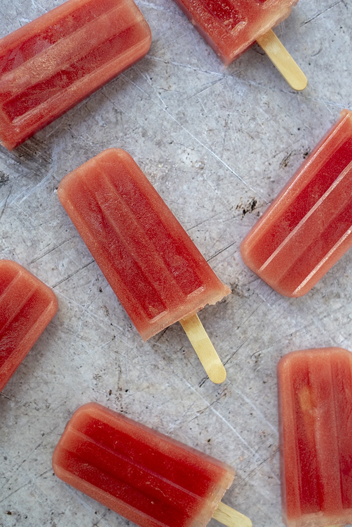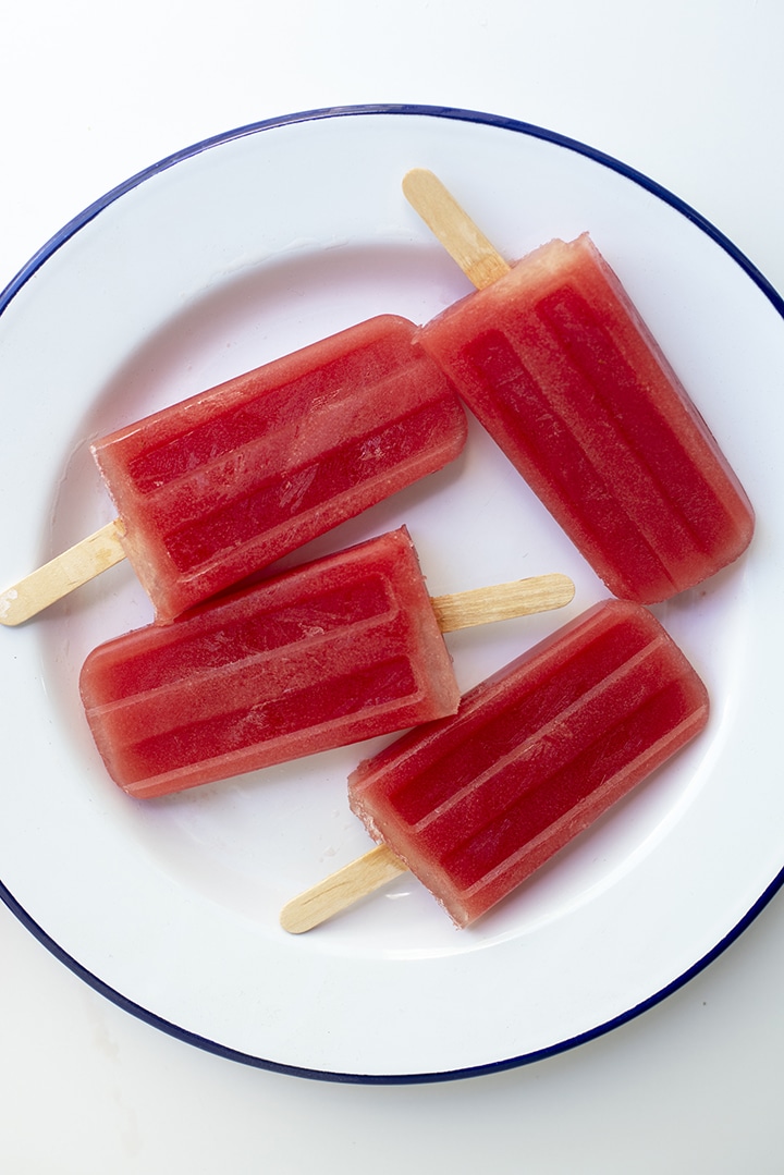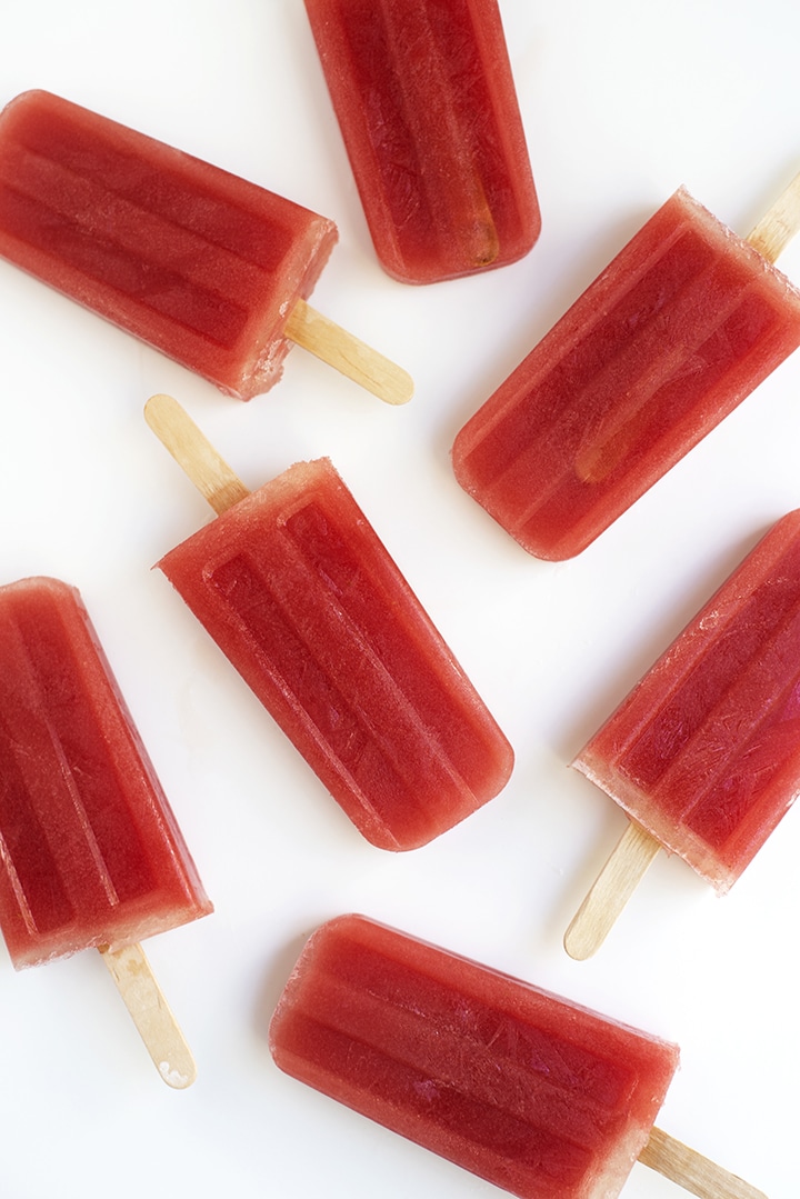 These are so great to serve on a hot day or for a big barbecue – Refreshing, pretty and good for you! These popsicles are just like a frozen agua fresca with a hint of lime and honey.