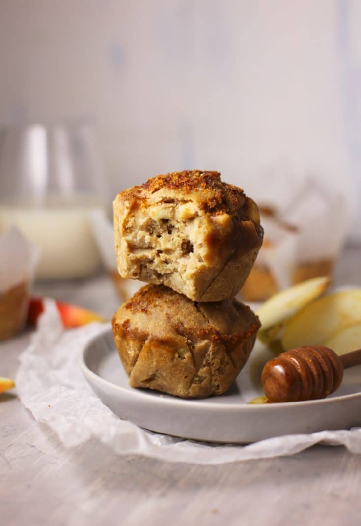 Try this protein packed apple muffin with greek yogurt, apple, egg, protein powder and oats. Make your own oat flour for the muffin recipe.