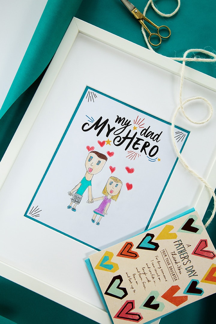 - Handmade Gifts – The kids love to get involved with making special things like a clay bowl or a special frame. This includes the free printable that we designed: My Dad, My Hero. Click right here to print. You can frame the printable or leave it with your card with breakfast in bed. Dad will love the kids’ drawing of him!