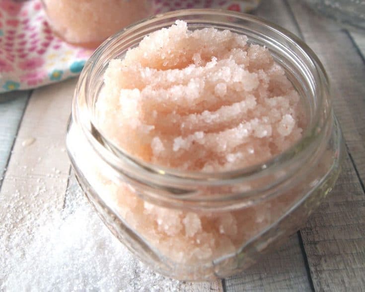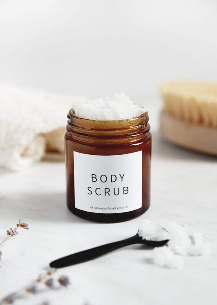 All body scrubs contain exfoliating ingredients that have a texture you can feel, such as sugar or salt. Add in an oil (we often use coconut) and essential oils to ad fragrance. The scrub will clear away the dry and dead skin cells that make skin look rough and brighten the skin! Simply add the sugar or salt (the exfoliating agent) with the oil and natural fragrances and you have made a homemade body scrub.