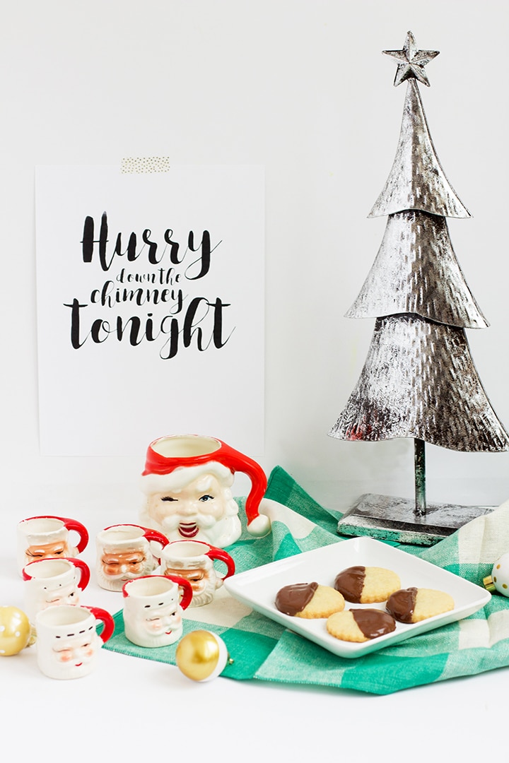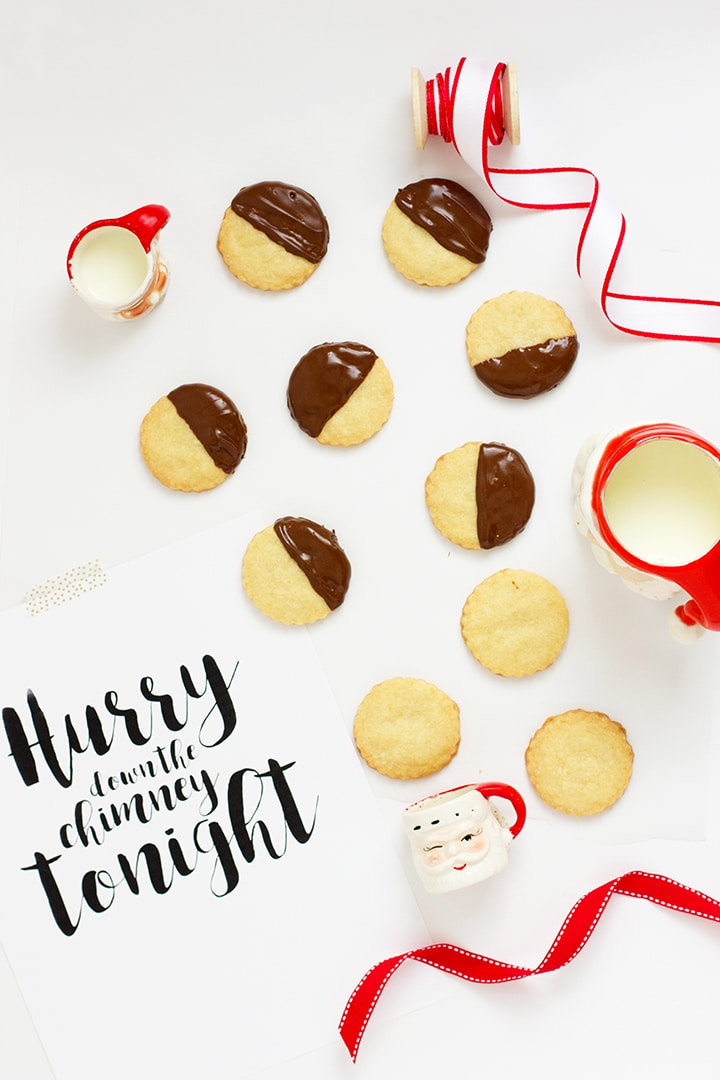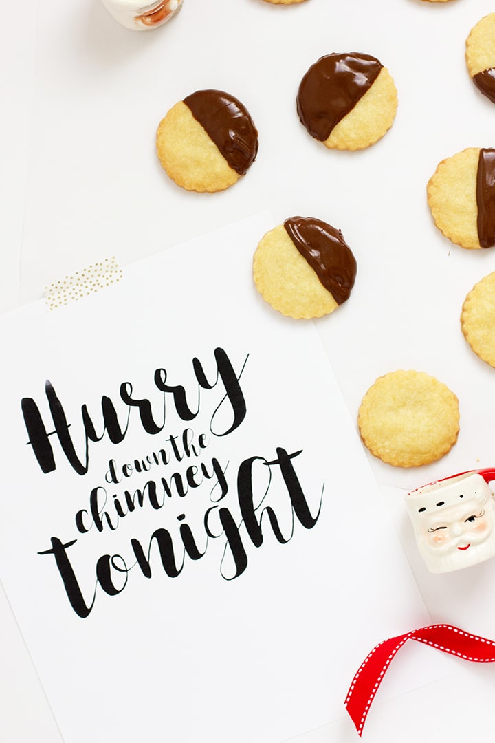 Only a few more days until Santa comes for a visit! We are delighted to share a favorite family recipe with you today in partnership with our friends at Horizon Organics. One of our Pop Pop’s favorite cookies was shortbread. To honor him, we made chocolate dipped shortbread cookies to leave out for Santa this year. We also created a free printable (click here) for you with one of our favorite sayings for Santa is “Hurry Down the Chimney Tonight”. Hang this free printable on your chimney or anywhere in the ouse to get the kids even more excited!