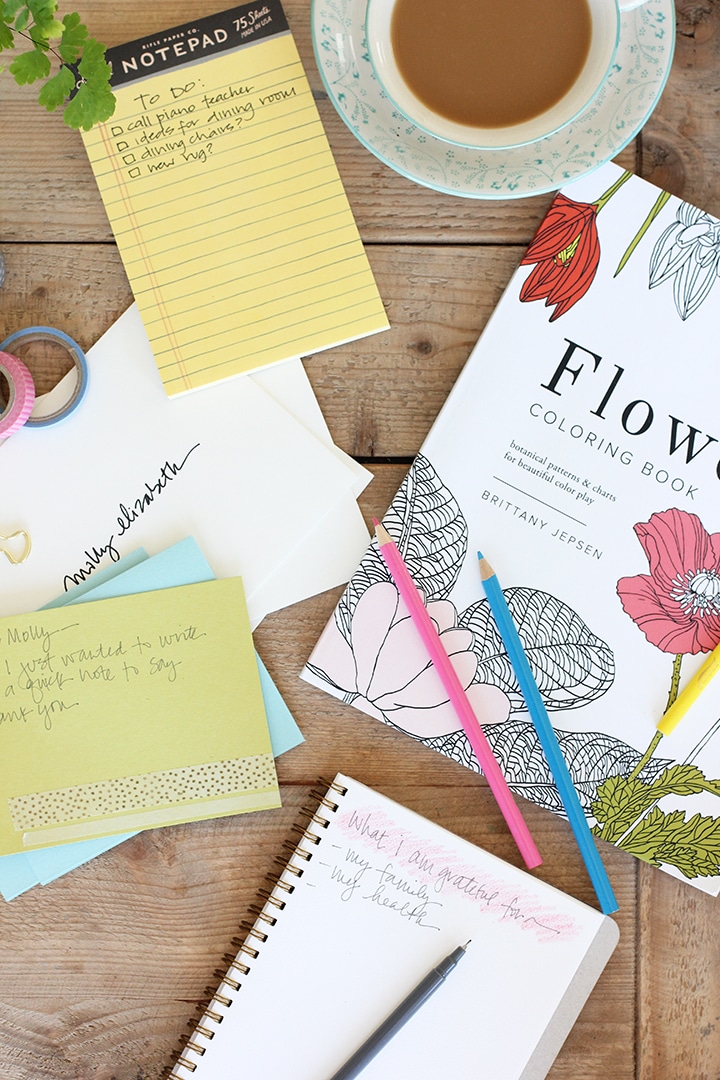 2. Be creative. Even though you might just have a little bit of time, get out your favorite coloring book and pencils. Or practice brush stroke lettering with a favorite brush pen. Or even some watercolor painting.