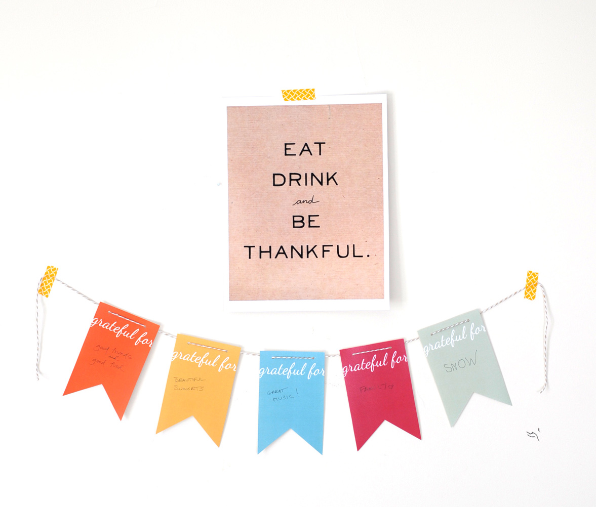If you’re looking for some cute labels for Thanksgiving leftovers, check out the cute watercolor labels we made for Julep this year. And we’ve printed out these grateful flags already for our dinner on Thursday…