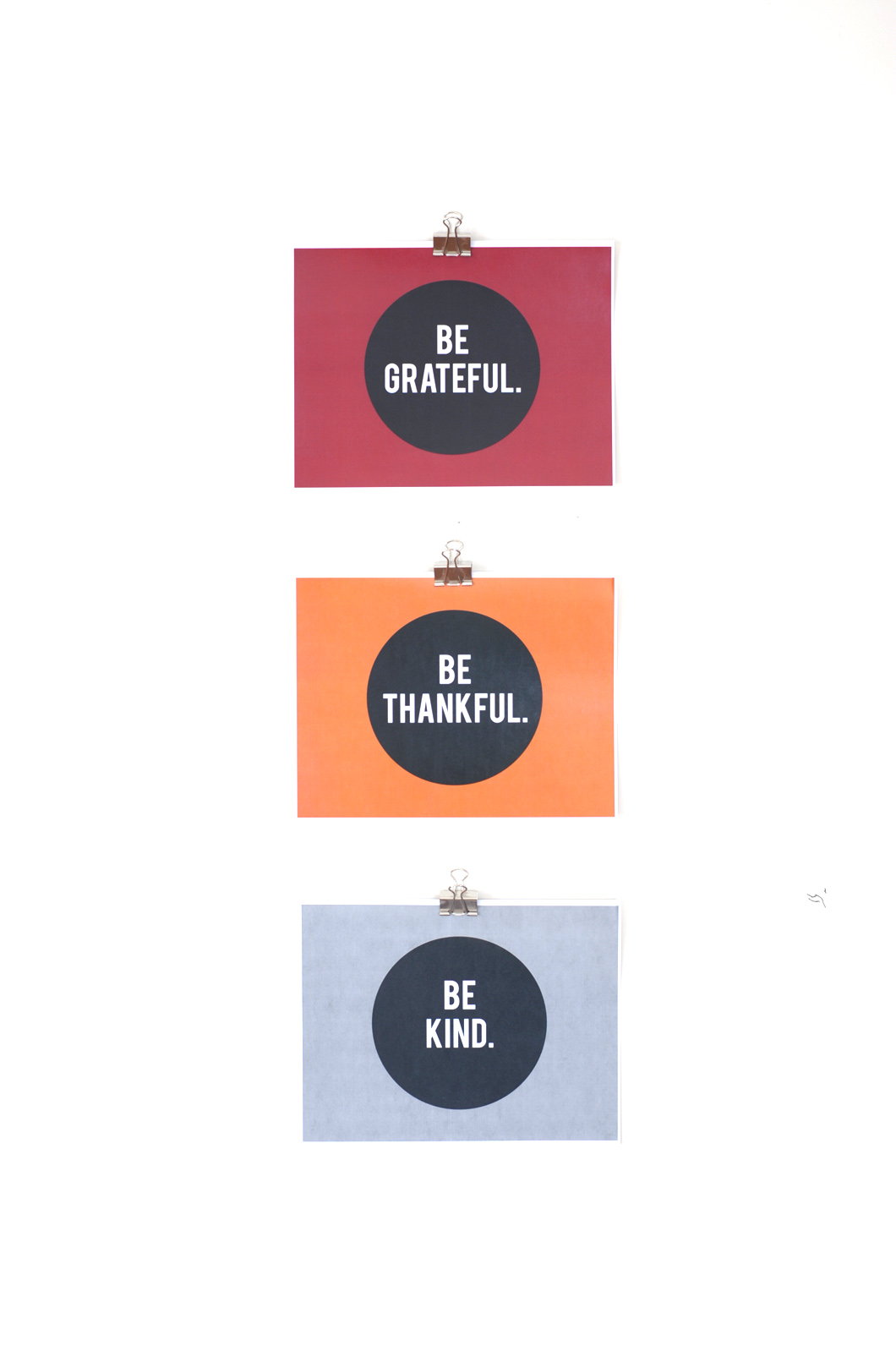 Here’s a little treat for you guys today, some free modern Thanksgiving printables. The first printable is one of our favorite sayings for this holiday, “Eat, Drink and Be Thankful.” That’s what it’s all about on turkey day, right? We’ve also made this modern set, a trio of simple phrases, Be Grateful, Be Thankful, Be Kind. These would look cute in simple black frames in your home this Thanksgiving. And the sayings really remind us what it’s all about. In fact, it’s something to remind ourselves of every day of the year.