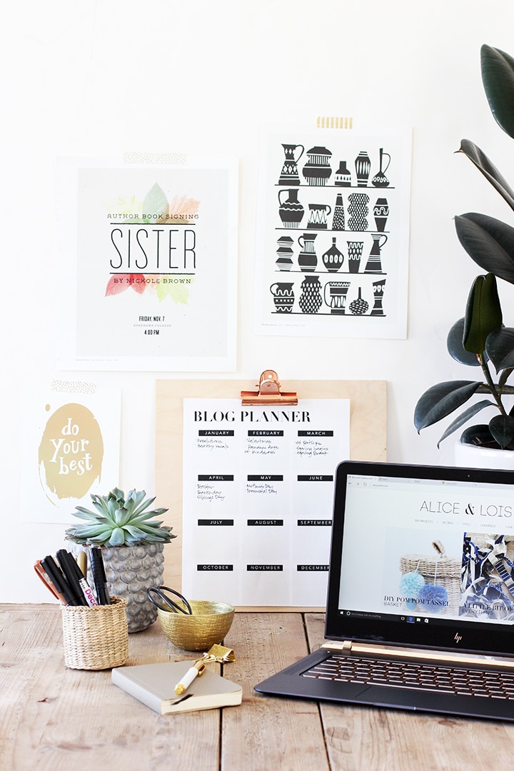 Today we are sharing a little bit of insight into how we run our site as a two-person team that happen to live a thousand miles apart. As you can imagine, staying connected is vital for the operation of this site. We are partnering with HP today to share how the Alice & Lois team of two gets things done and we’re sharing one of our favorite planning tools – a free printable blog planner!
