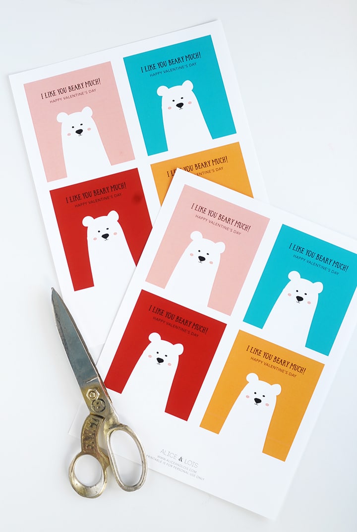 - Download and print the Free Printable Classroom Valentine and cut out each one with scissors.