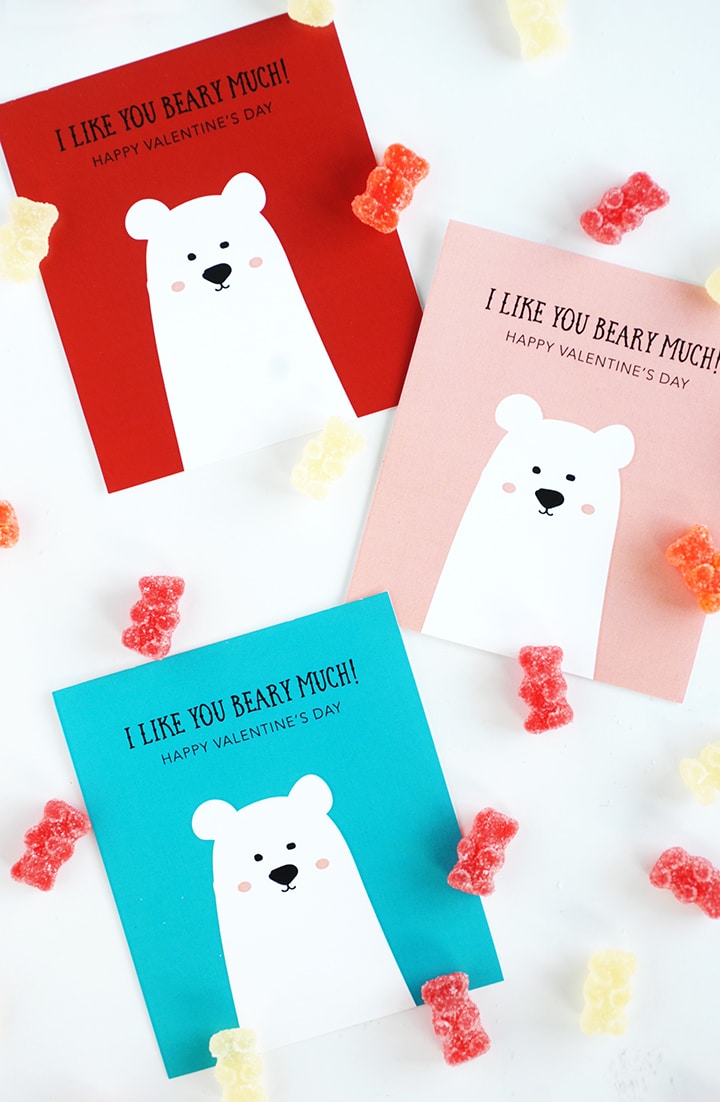 Valentine’s Day is right around the corner and we’ve created these fun little Free Printable Classroom Valentines. Both my girls are smitten with polar bears so I thought it would be fun to design a bear-themed printable Valentine. These are cute enough to hand out as is, or tape a mini pack of gummy bears to the card!