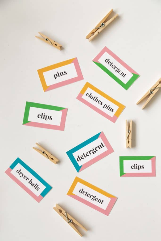 Why is it that when organizing a closet, pantry or laundry room things always look more tidy and put together when you can add labels?! This is the perfect time to share these colorful free printable laundry organization labels that Melissa designed for a project for Oriental Trading’s blog, FUN365. You can find the free printable labels here.