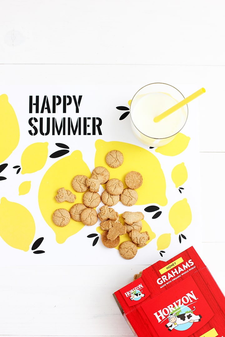Happy Summer, everyone! Our kids have finished school and it is time to celebrate summer. Today we have teamed up with our friends at Horizon Organics to share these adorable free printable summer placemats. You can print our three placemat designs; watermelons, lemons and strawberries on 11 x 17 paper and add some bright pops of color to your kitchen table.