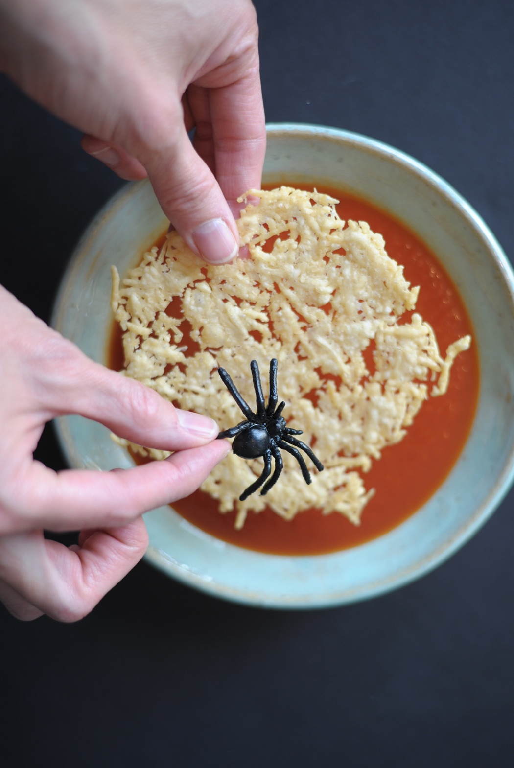 Read more for parmesan crisp recipe.top soup or salad with these scary spiderweb parmesan crisps
