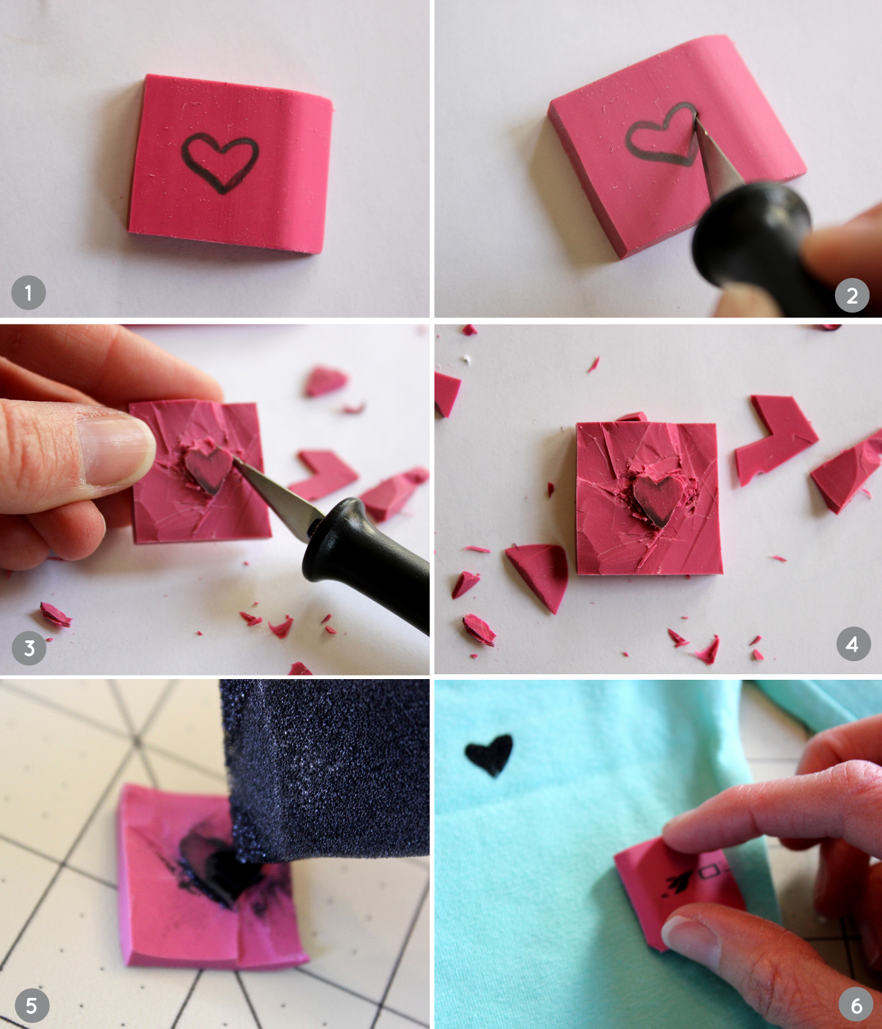 4. Finish cutting away the eraser part outside of the heart shape until you have made yourself a stamp!