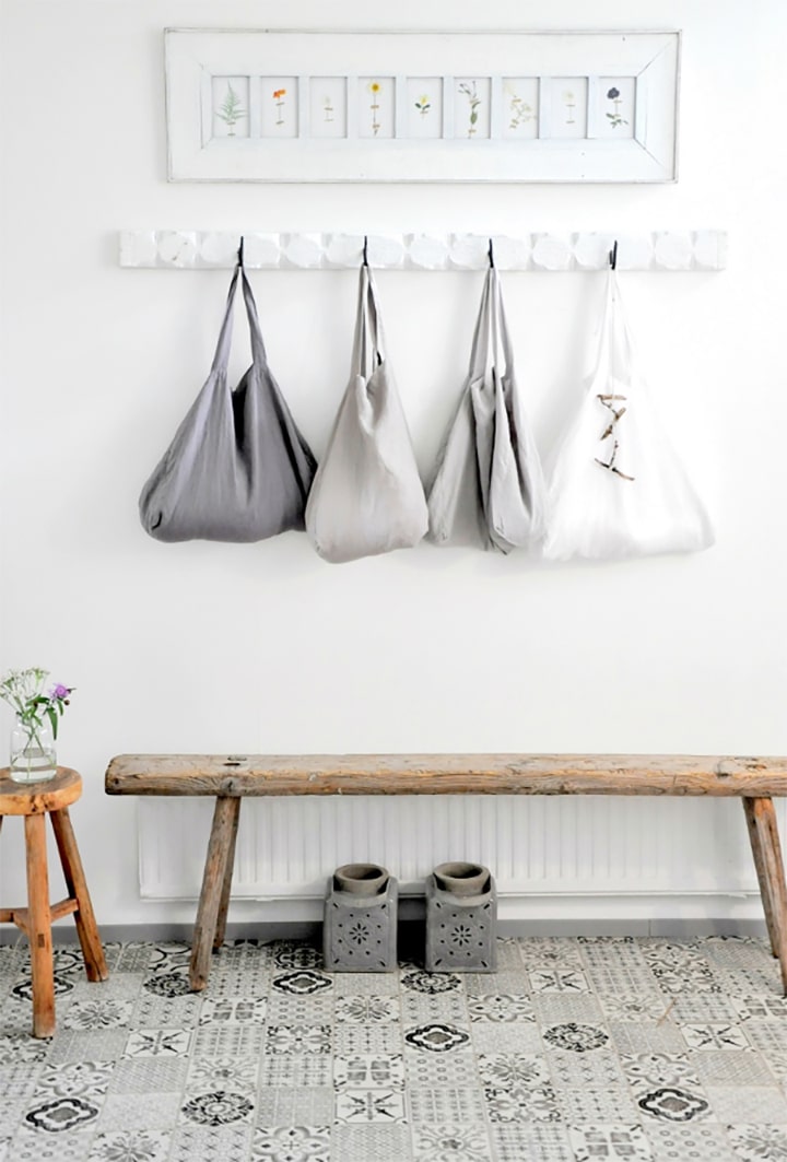 Pattern and texture make this entryway absolutely perfect. We love the rustic bench, coat hook and patterned tile. Function at it’s finest indeed. Image by dar-amina.