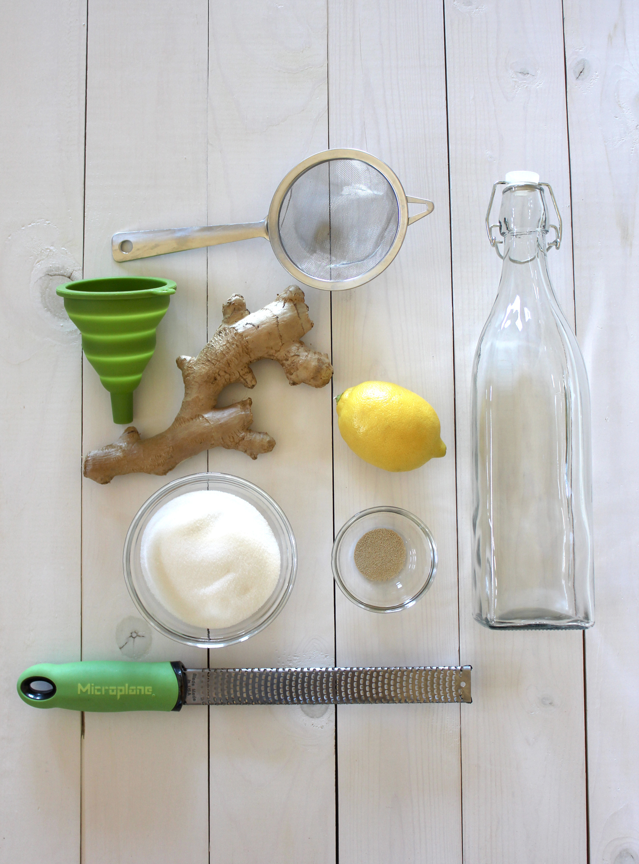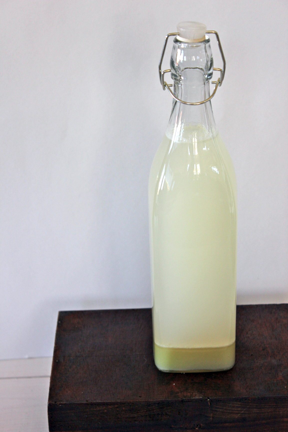 Supplies: microplane, funnel, 2 quart bottle with top, fine mesh sieve