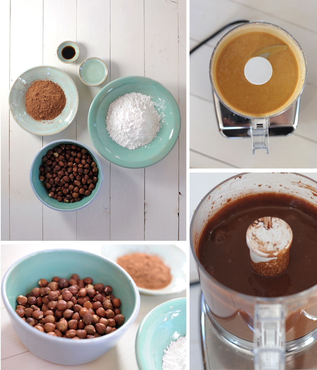 Process the peeled hazelnuts in food processor until the oil is released and it forms a smooth, loose paste. This takes about 5 minutes. Scrape down the sides of the bowl often.