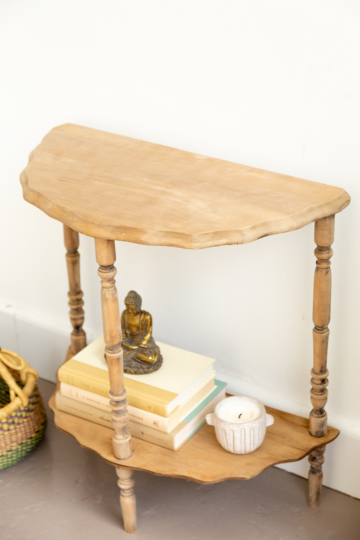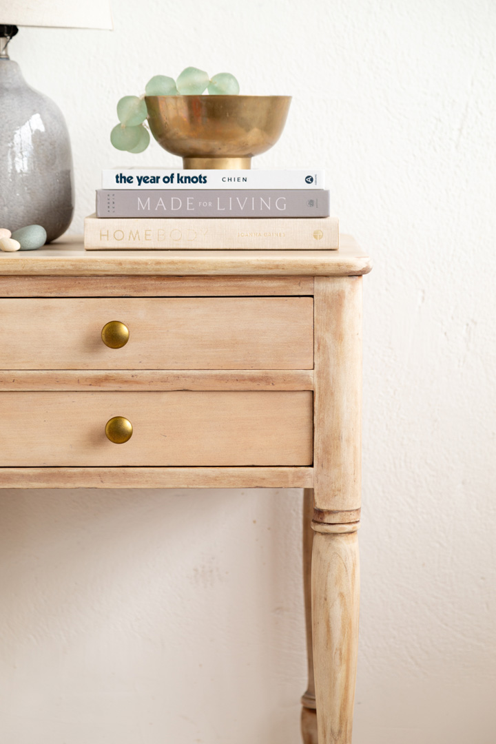We kind of have a thing for side tables – remember the fluted side table we made!? Or this tiled one?! All in all, we love DIY home projects. And, we also have a thing for sharing all of our knowledge on how to strip and bleach wood furniture.
