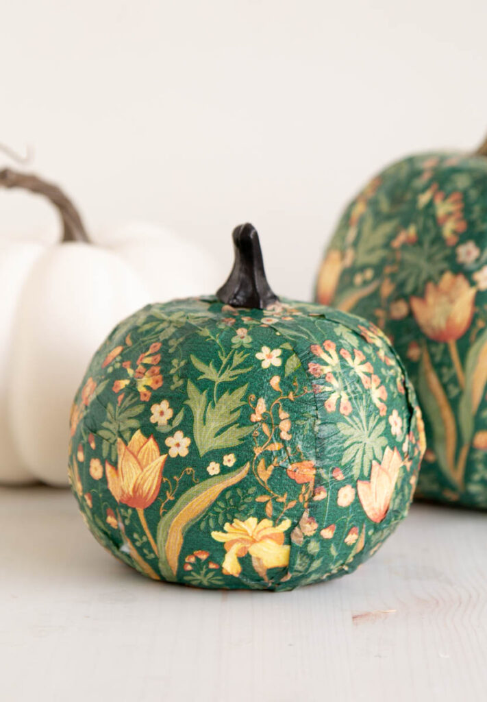 Patterned paper napkins are an excellent way to dress up fall decor, especially pumpkins. We are still in love with these DIY Chinoiserie Pumpkins!